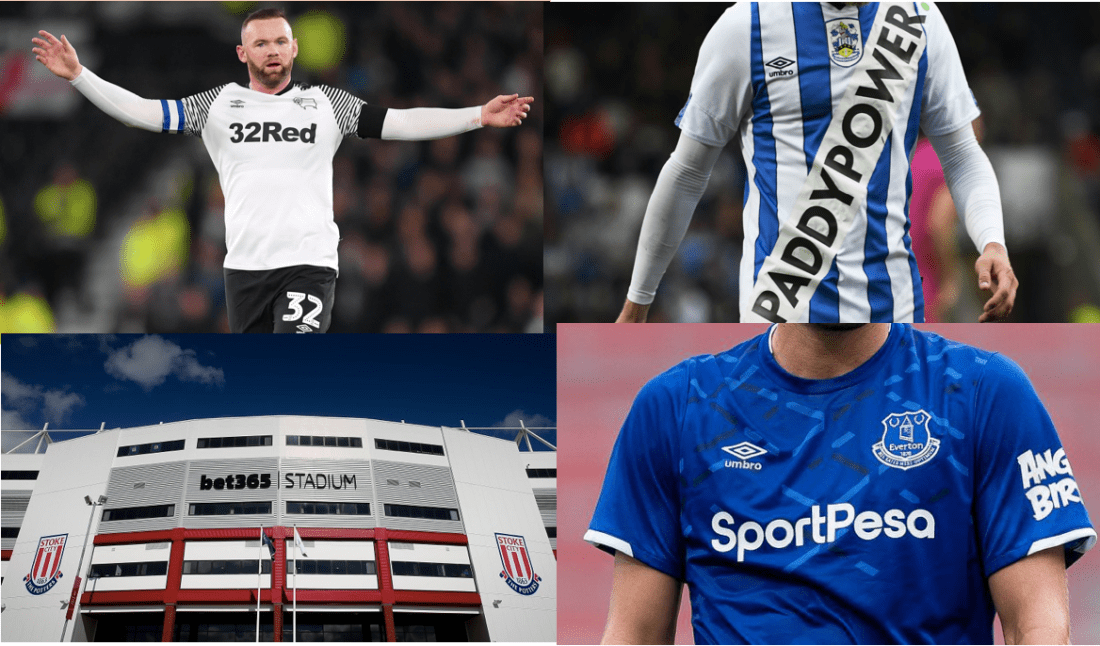 Hosts Derby were handing just a sixth league appearance to their new glamour signing. England record goal-scorer Wayne Rooney had arrived in January from MLS outfit DC United in a deal move that was not without its controversy. The transfer was described by some as a publicity stunt from betting firm 32 Red, who’s involvement in the deal created a sense of unease from many in the game. An abashedly unsubtle marketing ploy from 32Red stipulated in the terms of the player’s contract that Rooney must don the number 32 shirt (Pictured below). The firm were also said to have bought representatives to the negotiating table to push through an agreement would see the 34-year-old immediately named as club captain – a move which caused a sizeable stir among players and supporters alike. However, if any club could claim to have a closer relationship to the bookies than Derby themselves, it would visitors on the night Stoke City, in fact perhaps the only thing lacking in the cocktail of gambling advertising, was the fact was that the match was being played in Derby and not at Stoke City’s Bet365 stadium, the only stadium in the England for which a gambling company holds the naming rights. This is because Stoke’s owner, Peter Coates, is the co-founder of Bet 356. Add to this, the fact that this was a fixture being played in the SkyBet Championship. The UK betting firm (which is conveniently affiliated to the broadcaster which holds exclusive UK TV rights to fixtures across the three EFL divisions) owns the naming and primary sponsorship rights to the 3 EFL divisions – The Championship, League One and League Two. In all 15 of the Division’s 24 clubs don betting company logos on their shirts, down from 17 the previous season.